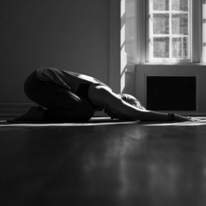 Kneeling, take your knees as wide is as comfortable for you and allow the hips to drop back towards the heels. Drop your chest over your knees and extend the arms forwards. Hold here feeling the body softening into the ground, and maybe taking a gentle sway of the hips and the head side to side. Hold for as long is as comfortable and focus on the breath and the feeling of this pose in the body.